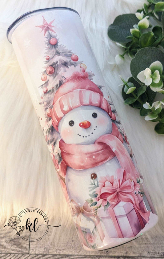 20 oz. Pink Snowman and Christmas Tree Tumbler