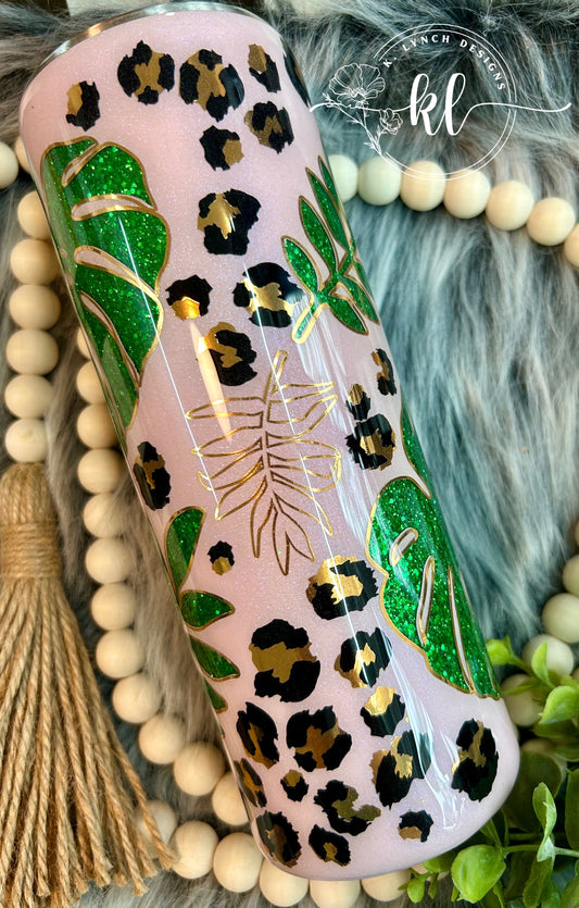 20 oz. Monstera Tropical Leopard Print Glitter Tumbler