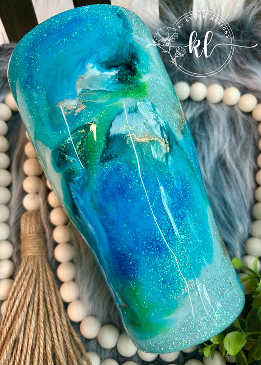 30 oz. Blues & Greens Ink Swirl Glitter Tumbler
